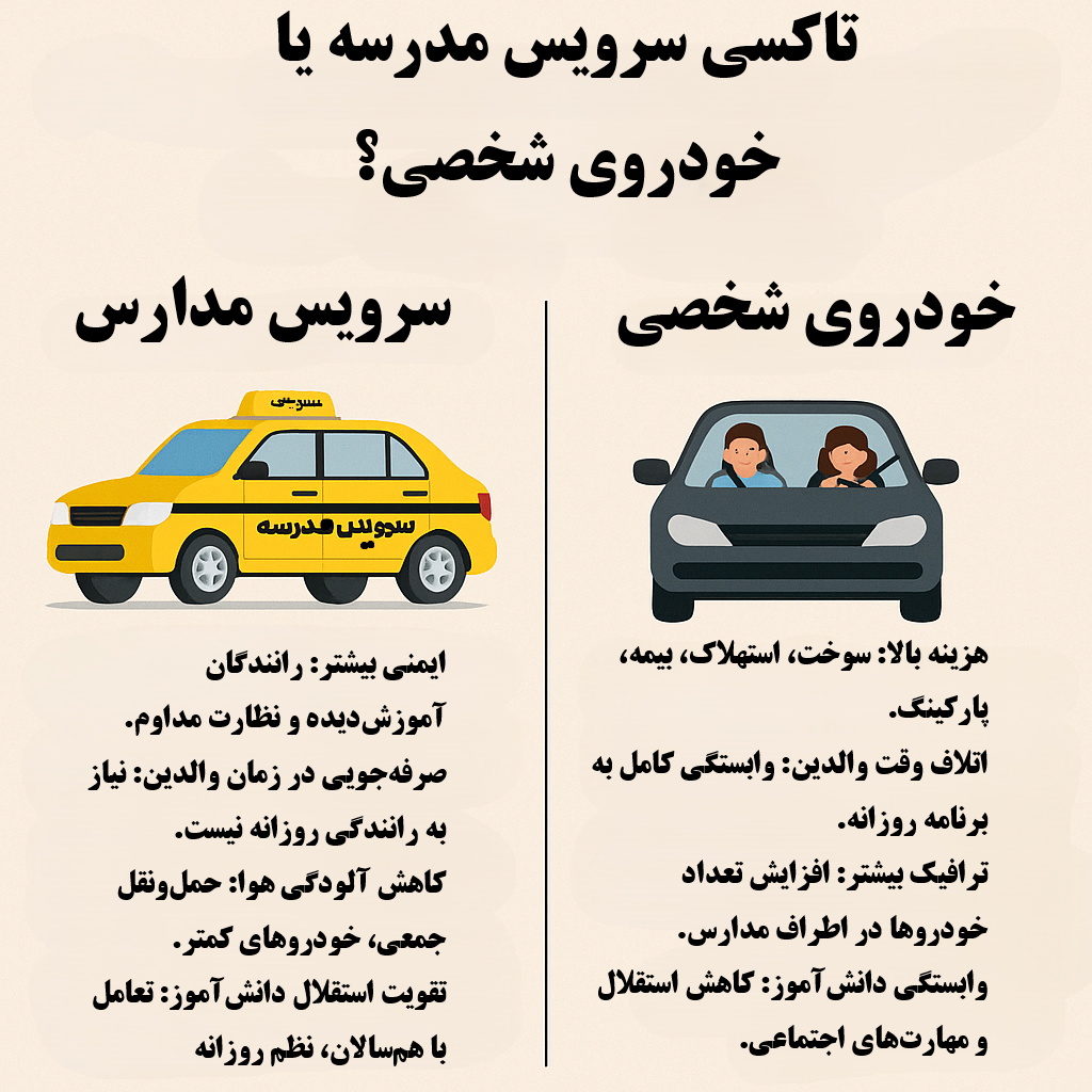 1404-05-08Published by Hamed Habibi on 1404-05-08Categories دستهبندی نشدهتاکسی سرویس مدرسه یا خودروی شخصی؟تاکسی سرویس مدرسه یا خودروی شخصی؟ انتخاب بین استفاده از تاکسی سرویس مدرسه یا خودروی شخصی برای جابجایی دانشآموزان به مدرسه یکی از تصمیمات مهمی است […]